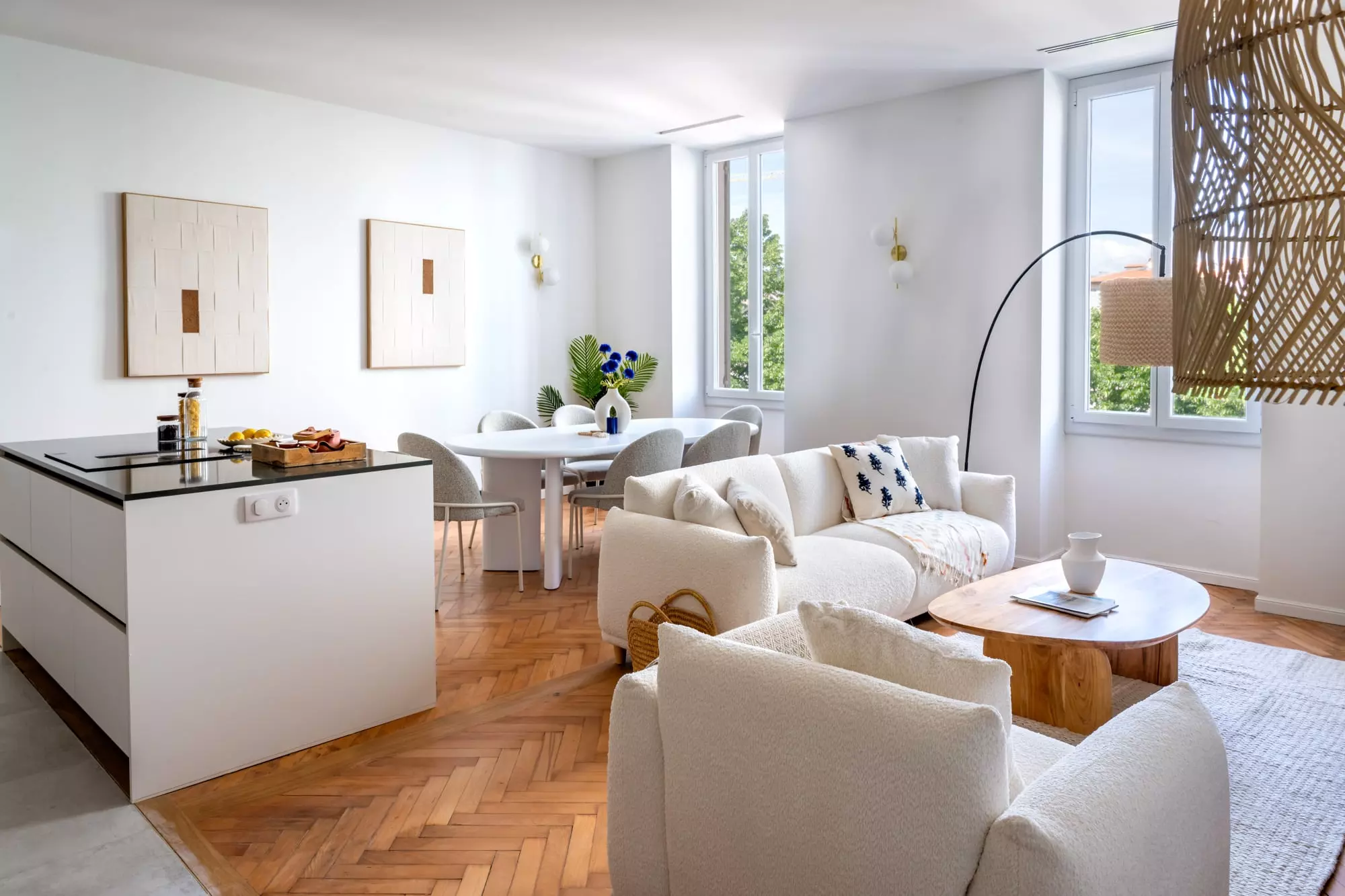 confiée à la Maison Bonnet a consisté à réaliser une réhabilitation complète, en ouvrant les volumes pour créer un espace fluide et cohérent.