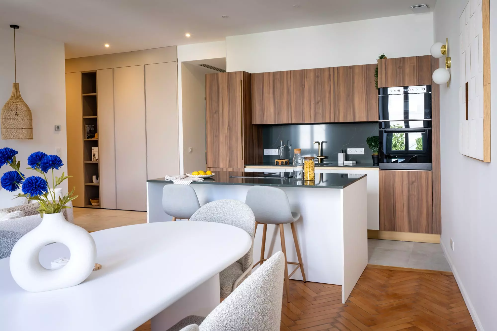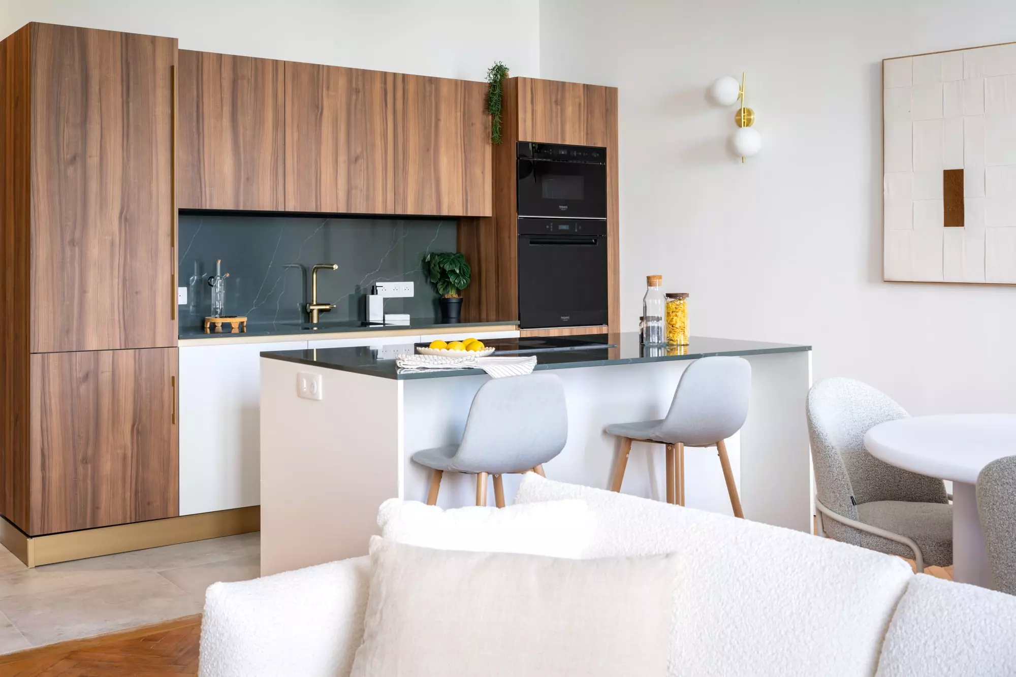 ● Intégration d’une nouvelle cuisine conviviale au cœur de l’appartement, pensée comme un prolongement naturel de l’espace de réception,