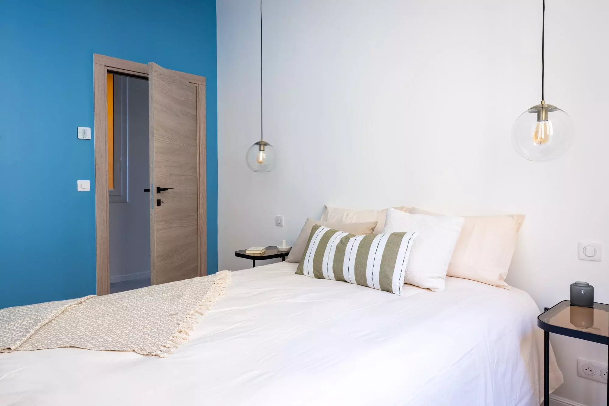 La décoration privilégie des teintes claires et lumineuses, sublimées par des matériaux nobles et des lignes épurées. L’esprit méditerranéen s’invite