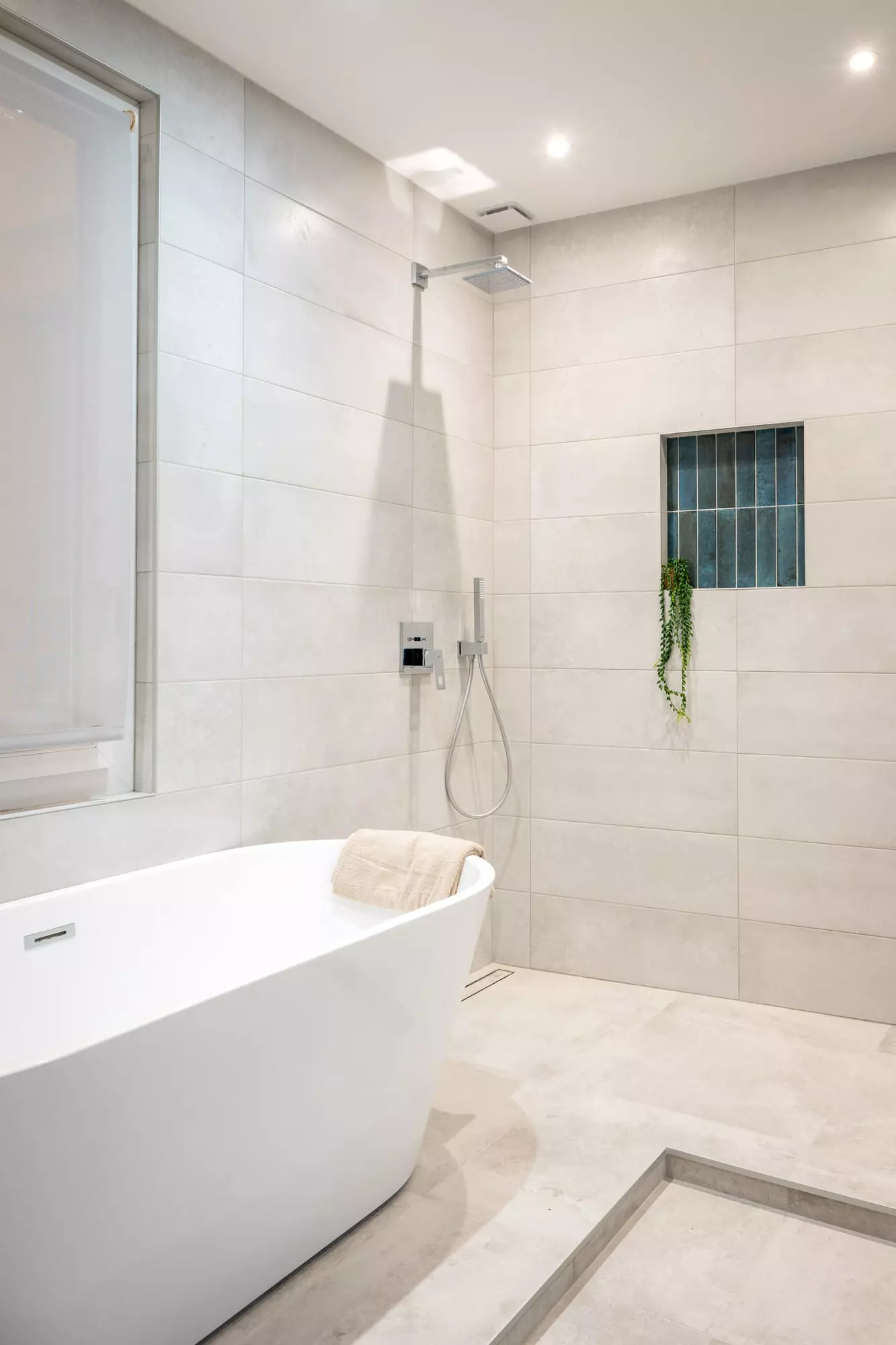 ● Création d’une salle de bain familiale avec douche et baignoire bénéficiant d’une fenêtre,