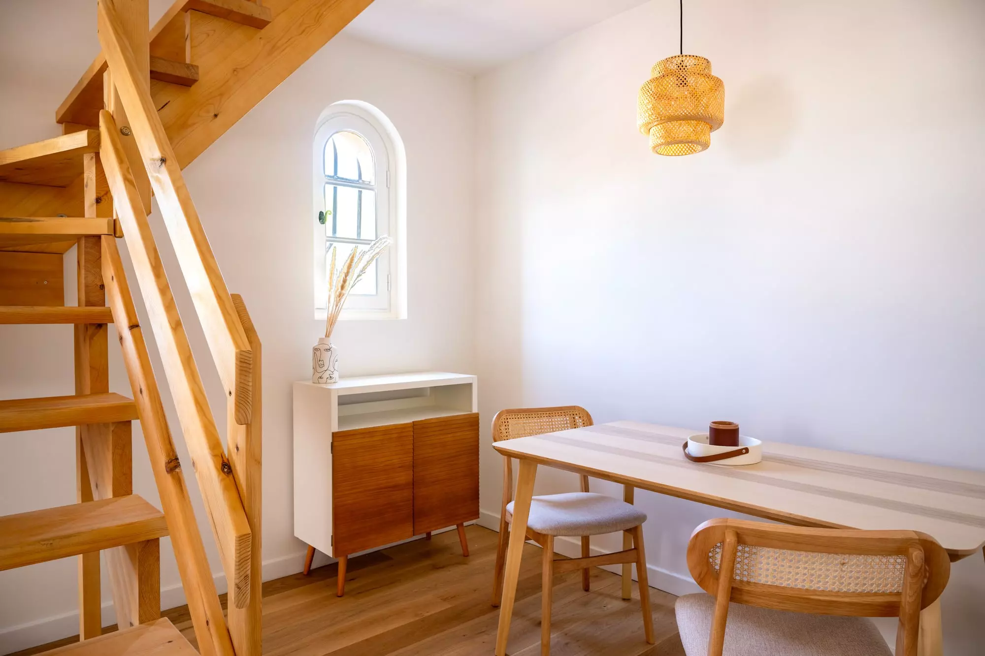 Notre agence a été mandatée pour transformer l’un des appartements du premier étage de cette villa dans les Alpes Maritimes, accessible par une entrée privative. Initialement composé d’une chambre, d’une petite salle de bain, d’un séjour et d’une cuisine installée sur un balcon fermé, le logement incluait également une mezzanine sombre, accessible par une simple échelle de meunier. L’objectif était clair : créer un cocon accueillant 4 à 6 personnes, tout en préservant l’esprit authentique de la maison.